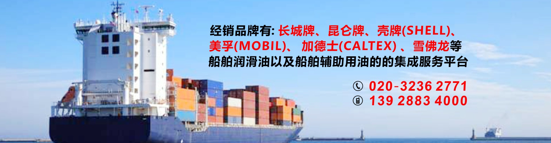 公司代理中石化長城潤滑油以及中石化國際品牌SINOPEC潤滑油,經銷品牌有昆侖牌、殼牌(SHELL)、美孚(MOBIL)加德士(CALTEX)雪佛龍(CHEVRON)是船舶潤滑油以及船舶輔助用油的的集成服務平臺,也可按照船東要求提供船舶消防救生用品、勞保用品、五金燈具及甲板用品等船舶配套產品。